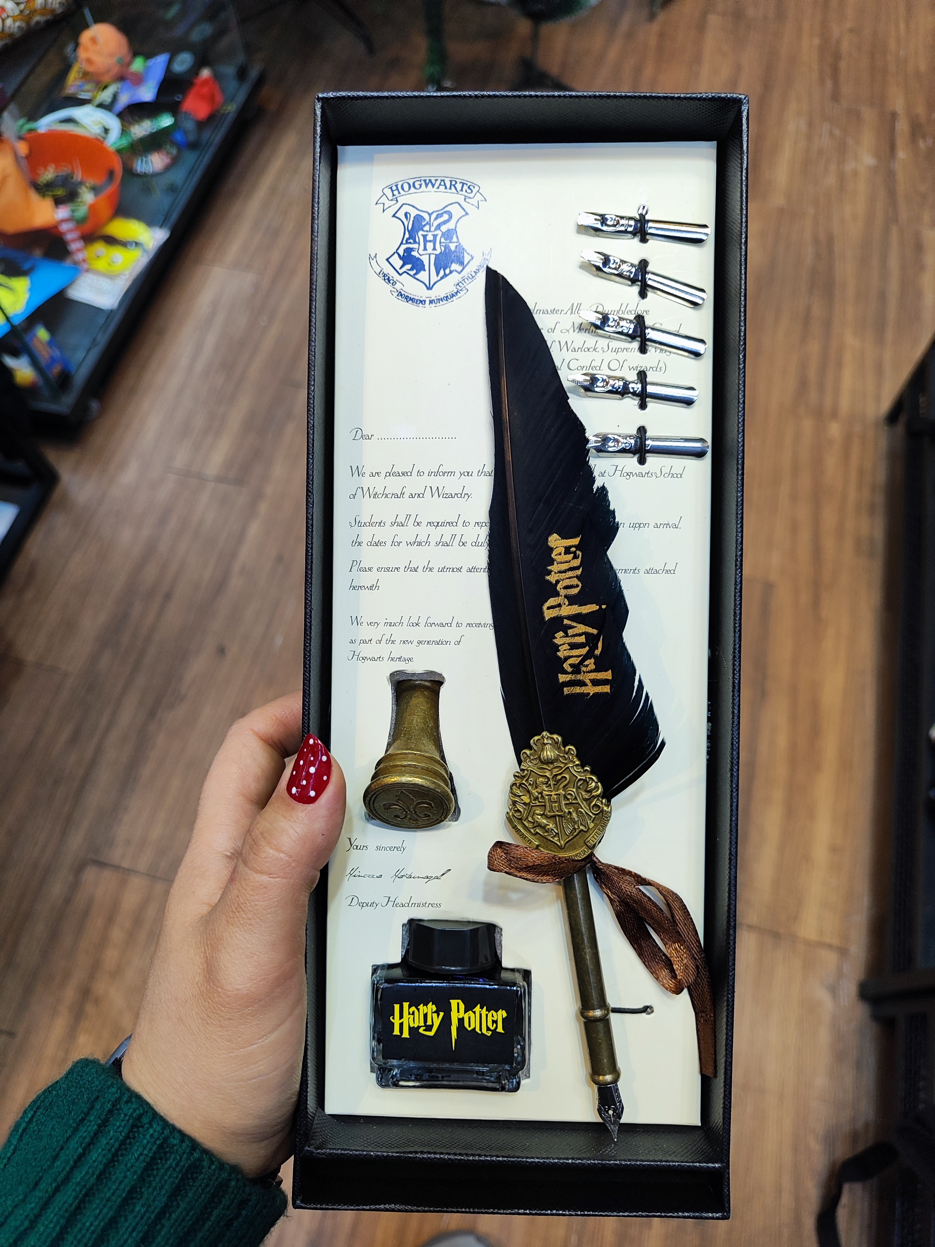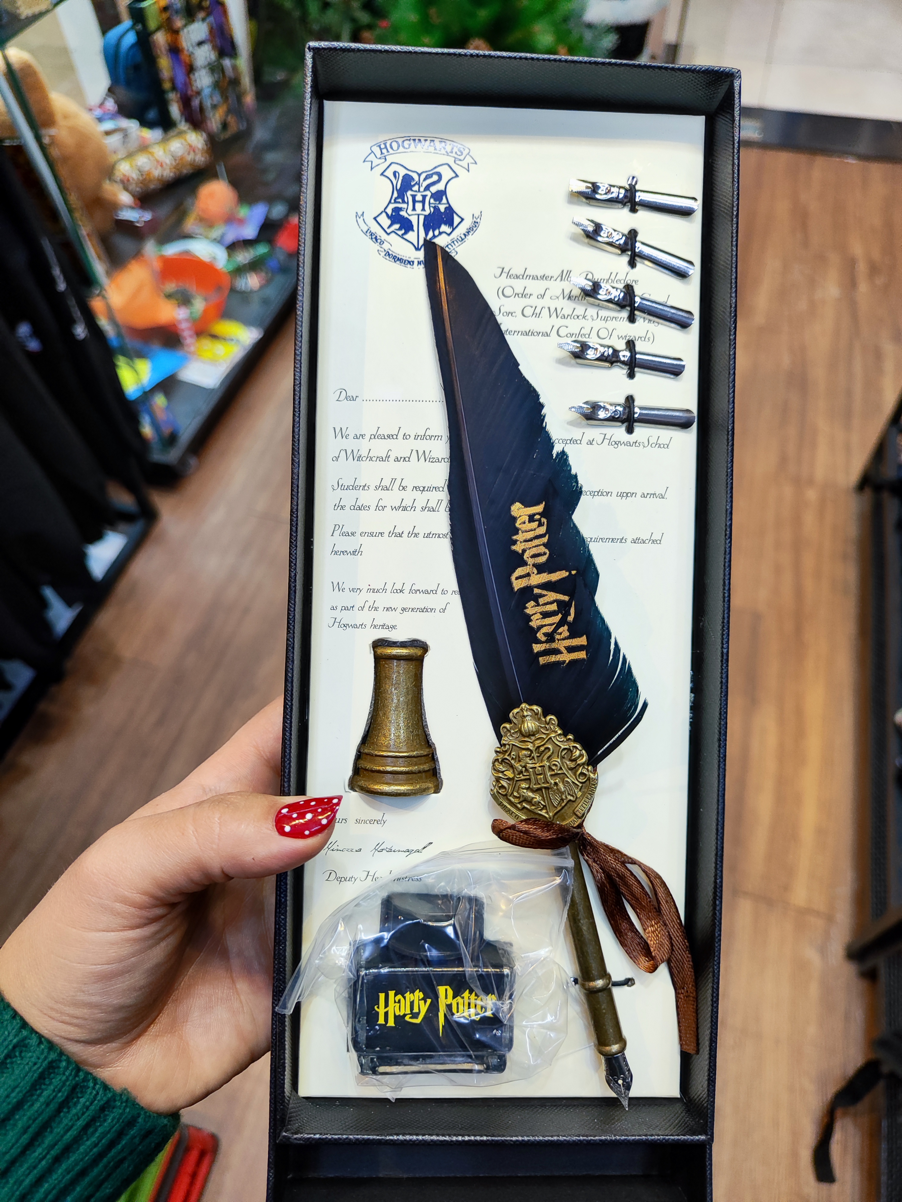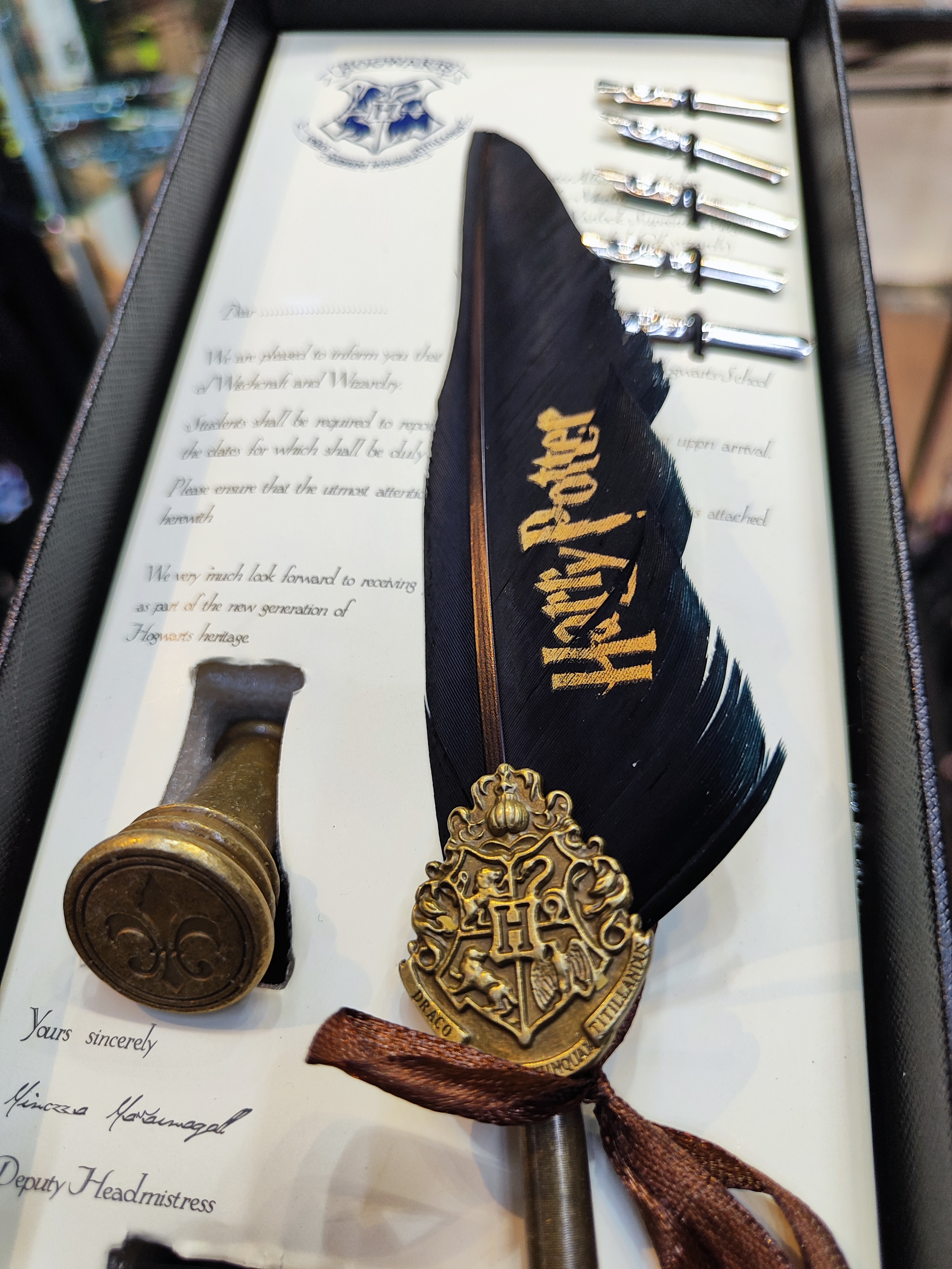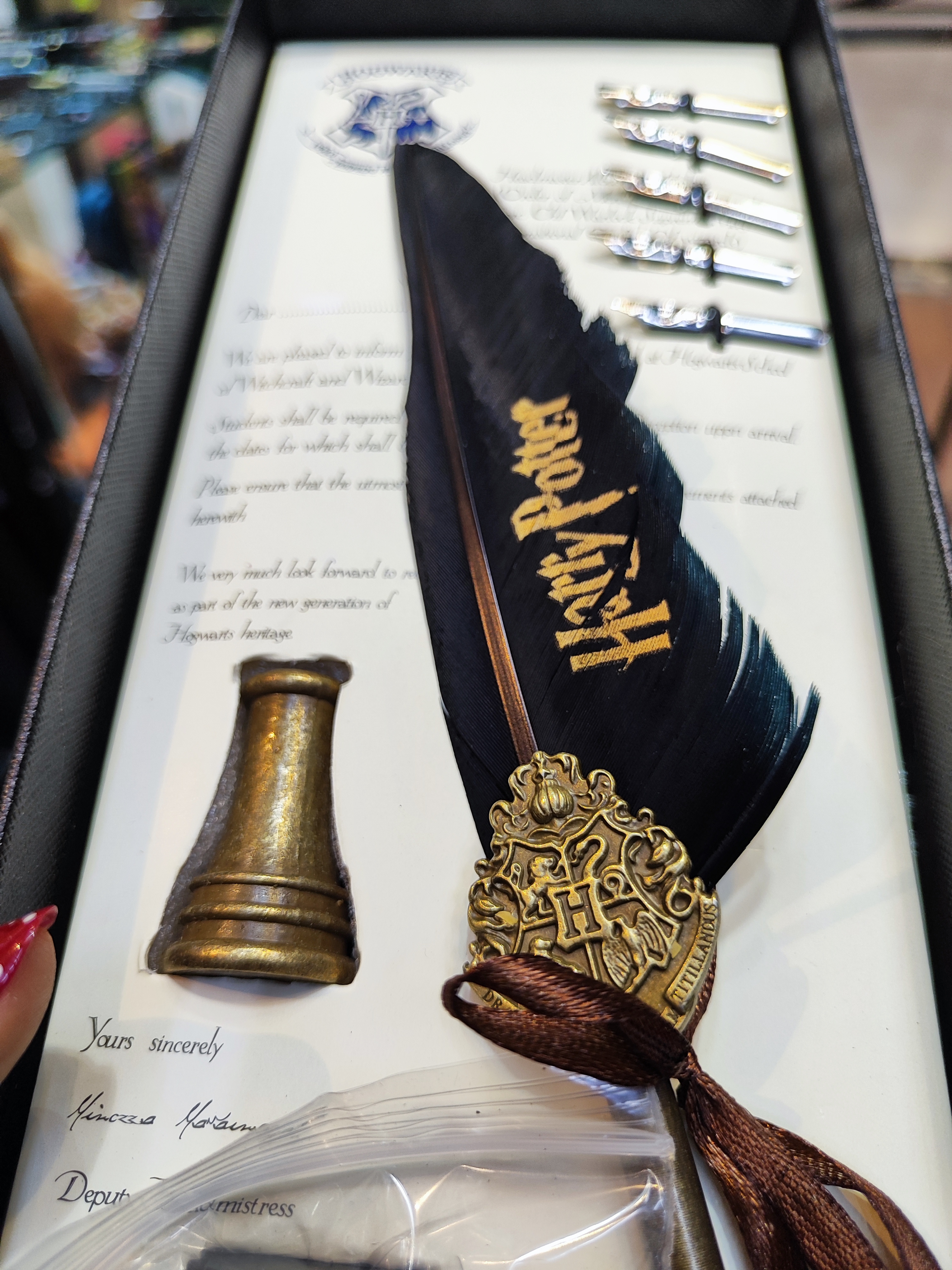 خرید قلم جادویی پر هری پاتر اصل | پک لوکس با جوهر و مهر هاگوارتز