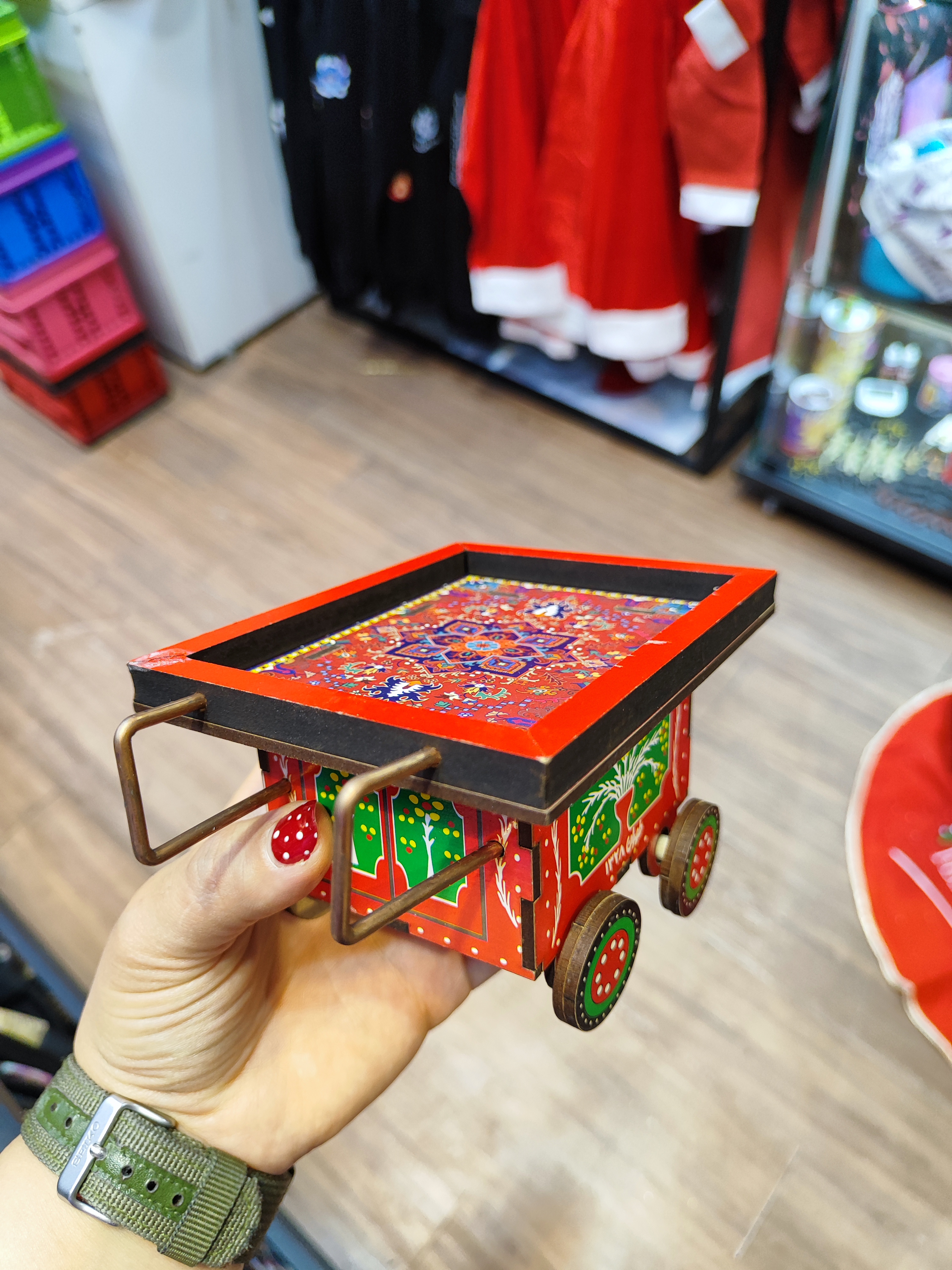 گاری چوبی تزیینی مدل یلدایی – مناسب سفره شب یلدا و دکور خانه