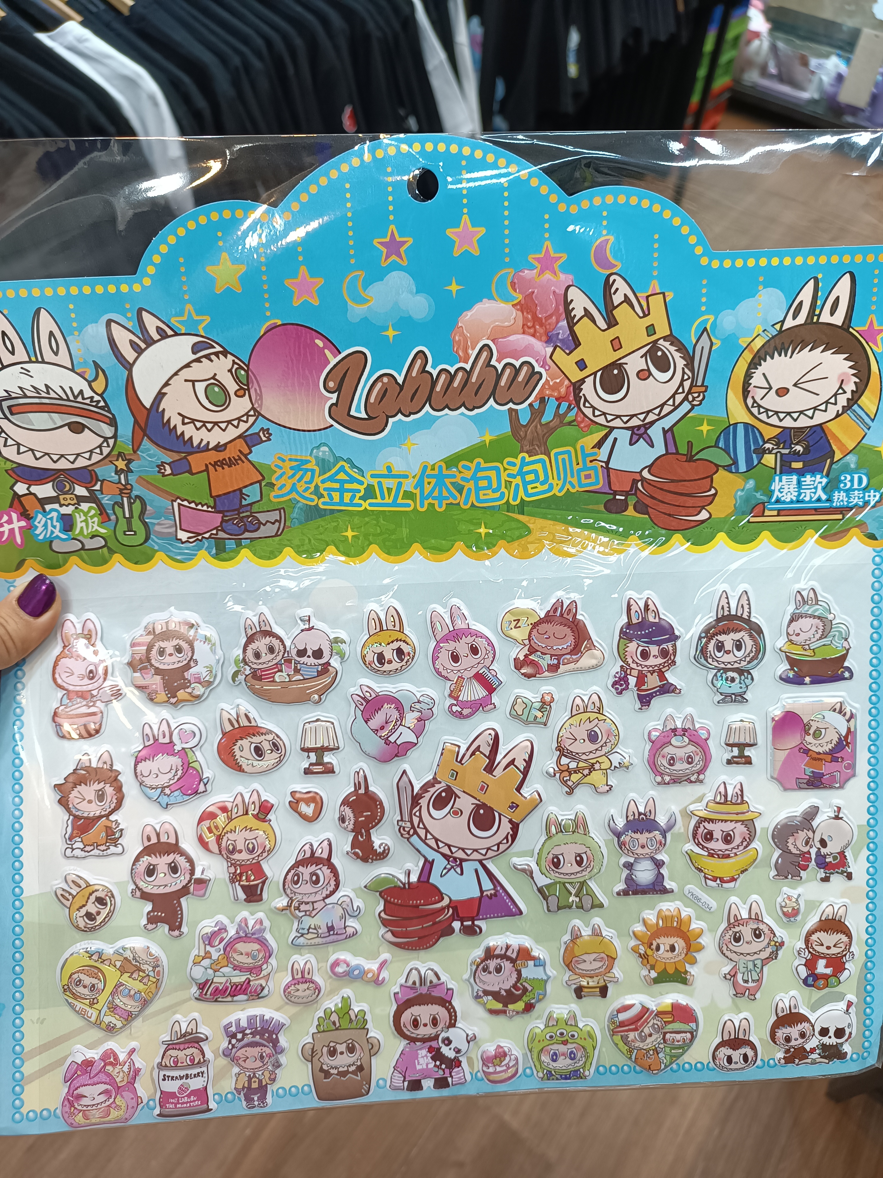 خرید استیکر پوفکی لبوبو هولوگرامی | ورق استیکر فانتزی با چسبندگی بالا